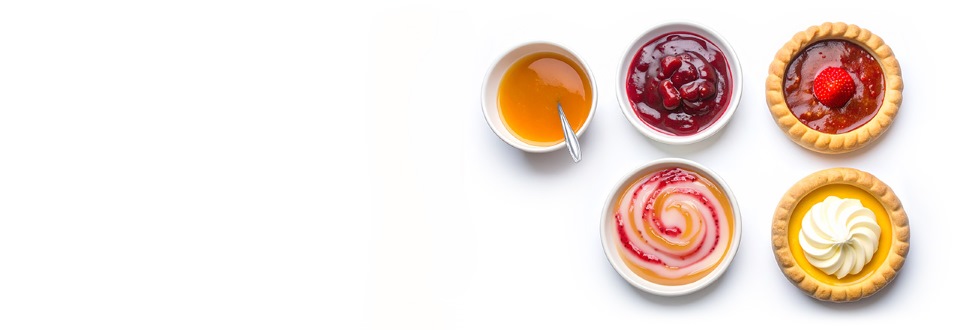 - Fruit: Jam, gelling sugar, fruit desserts and water jelly.